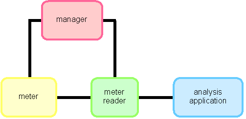 The meter, manager and meter reader in the RTFM architecture use SNMP to communicate with each other. (SNMP = Simple Network Management Protocol; for more information see, for example, The SimpleWeb) .